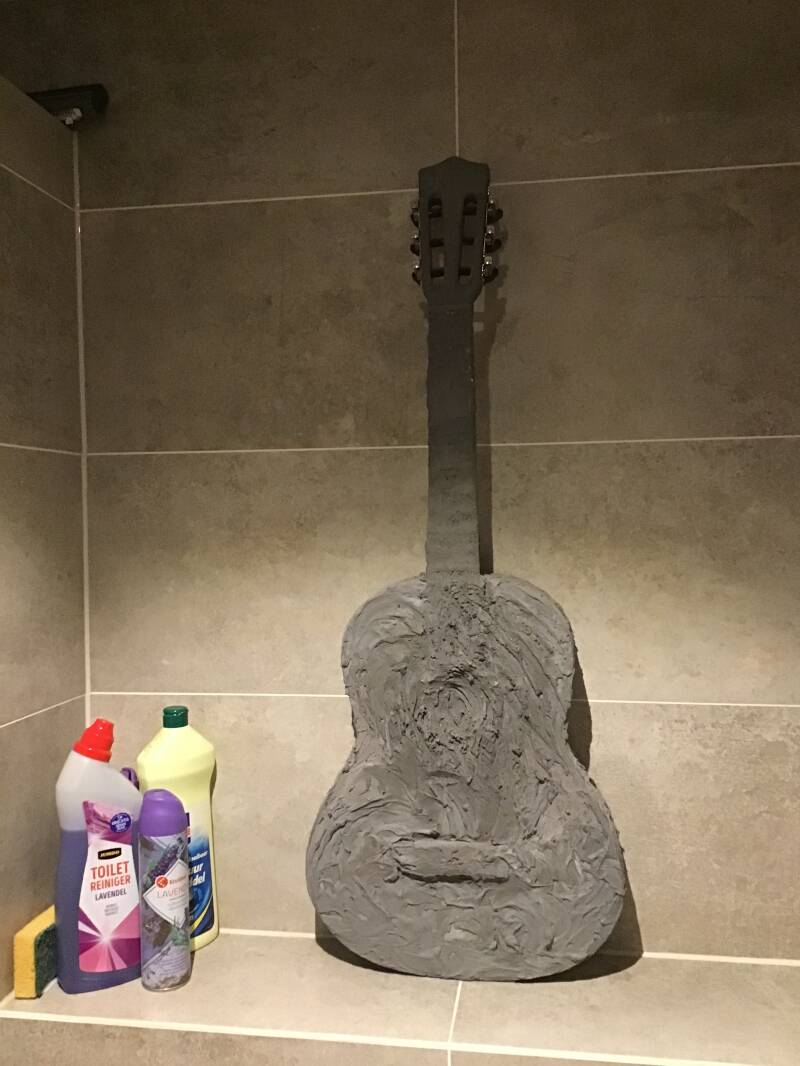 Op de badkamer. Een gitaar van steen? Of toch niet…?